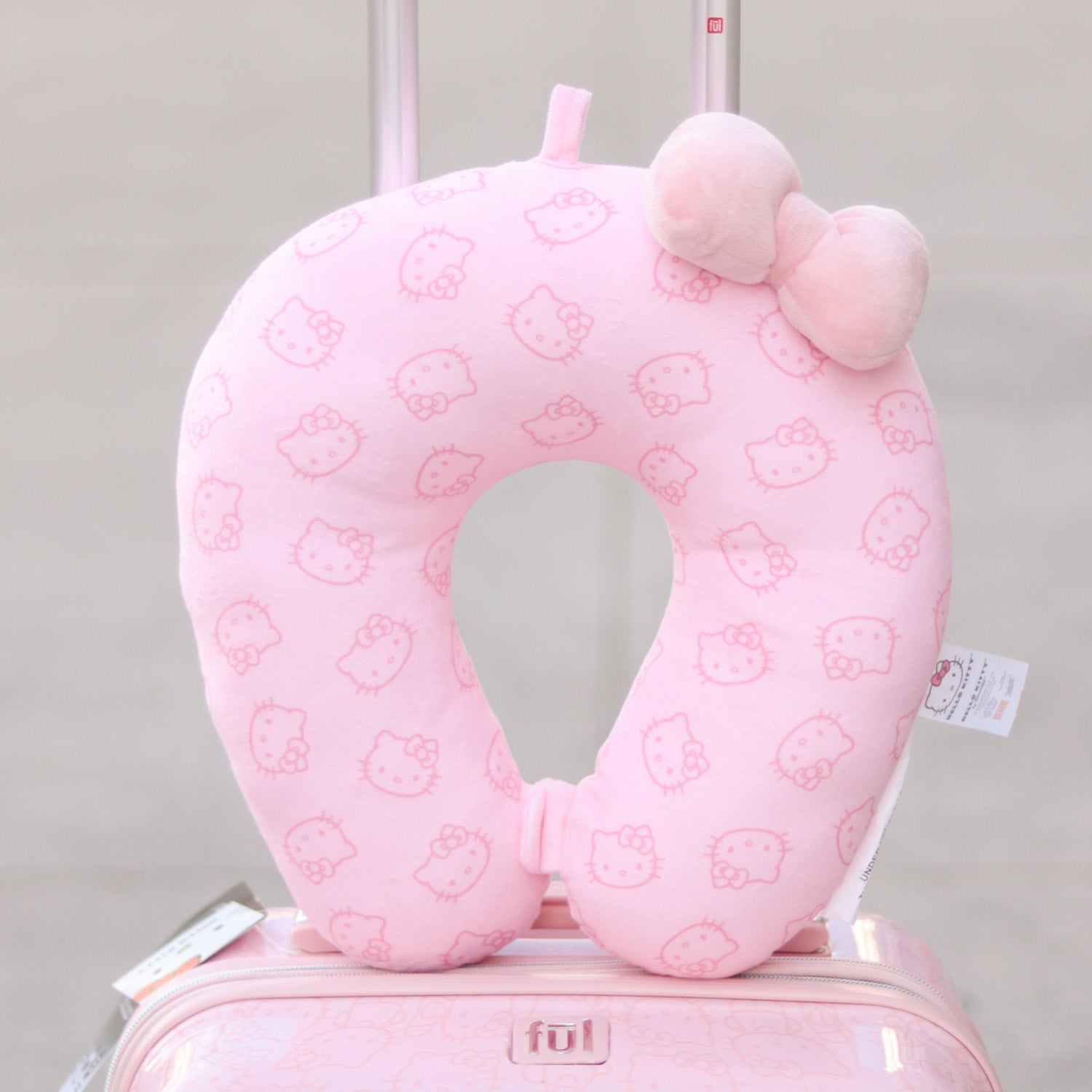 Travel the world with Hello Kitty rolling luggage and neck pillows.